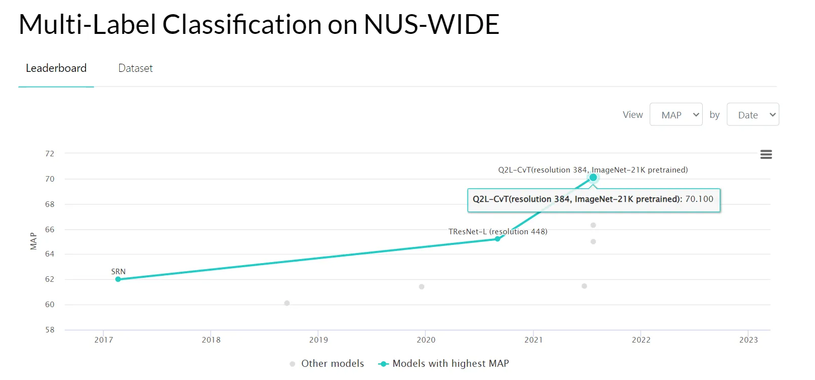 You can also check out the Multi-Label CLassification benchmarks of other datasets. We will provide some examples of the datasets and SOTA (state-of-the-art models benchmarked against these datasets) below.