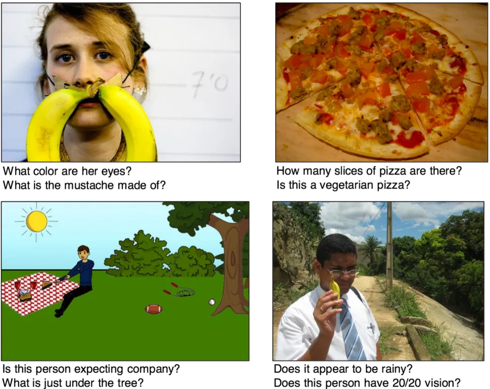 • Visual Question Answering (VQA) - in this CV task, we give a text-based question about the image as an input, and the system should provide an answer as an output;