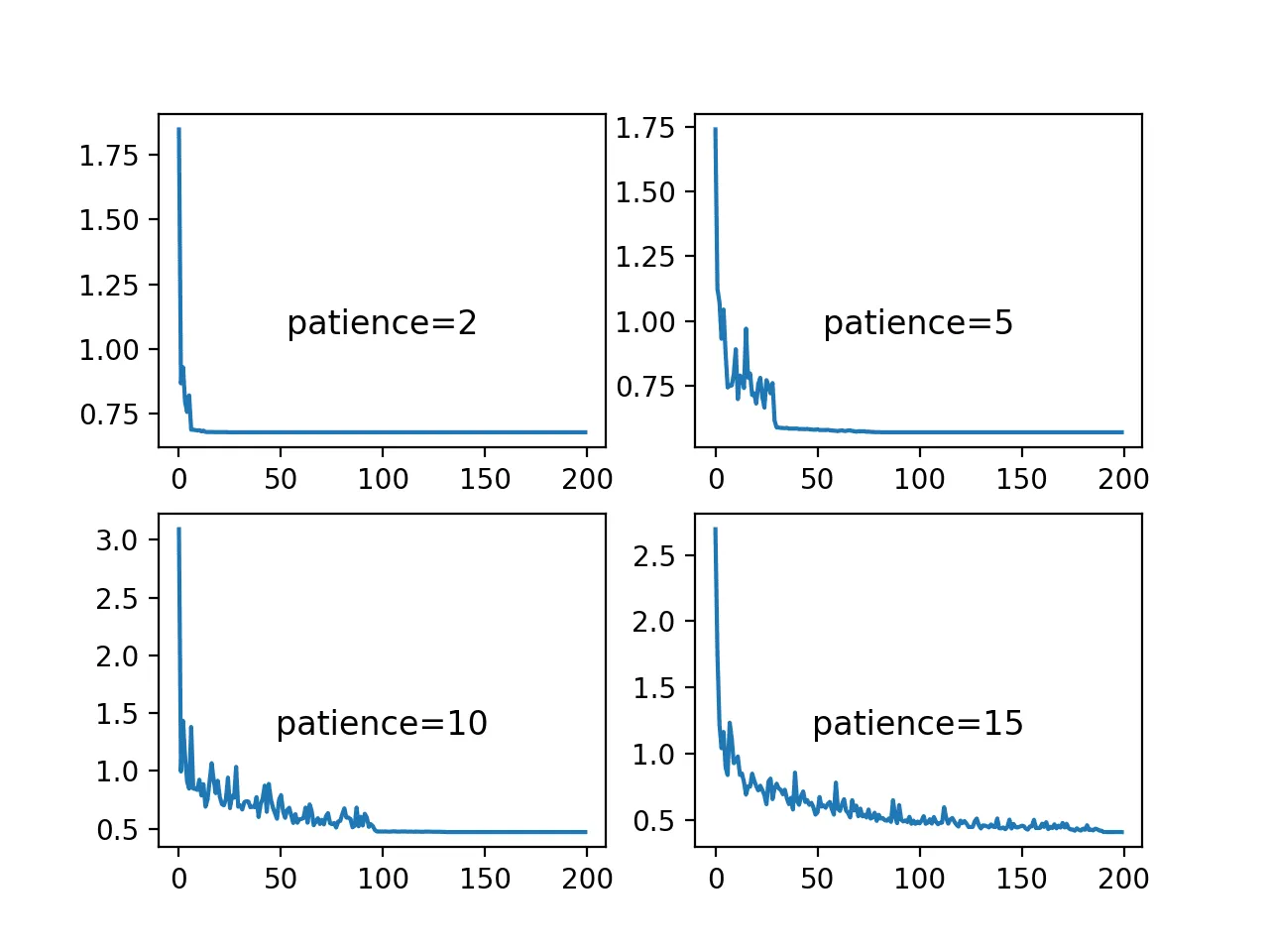 - Threshold - the minimum value by which the quantity should change to count as an improvement. For example, if the threshold is 0.01 and the monitored quantity changes from 0.03 to 0.025, this is not counted as an improvement.