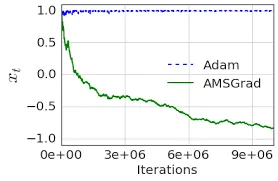 Performance of ADAM and AMSgrad has been presented on a synthetic function to outline the convergence problem of the ADAM. Source