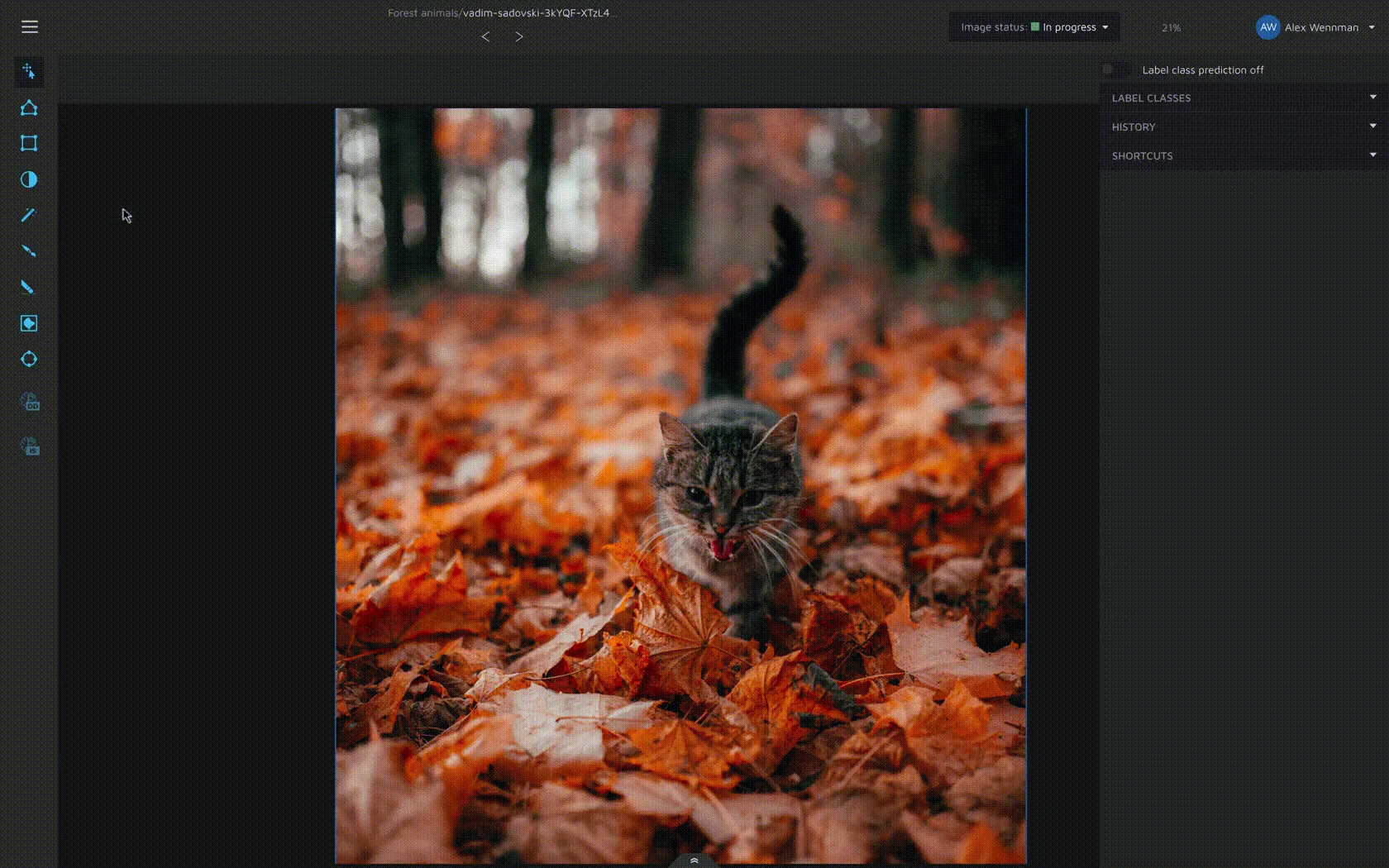After labelling 10 images with bounding boxes and setting their image status to "done" or "to review", we will start to train our Object Detection Assistant. This AI-powered tool will help you create annotations quicker.