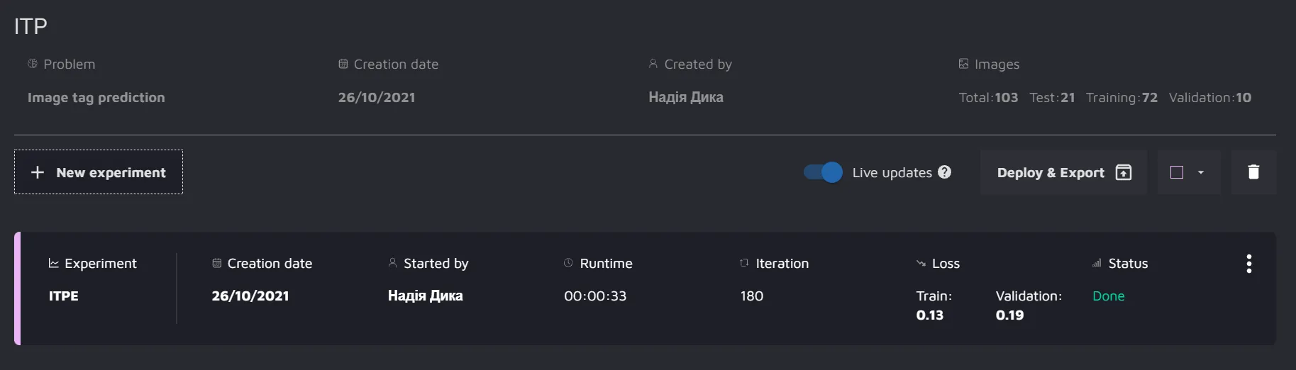 Image tag prediction dashboard